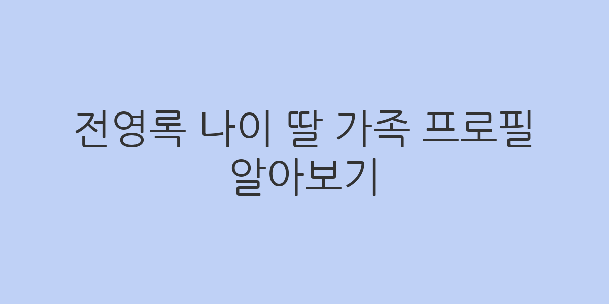 전영록 나이 딸 가족 프로필 알아보기